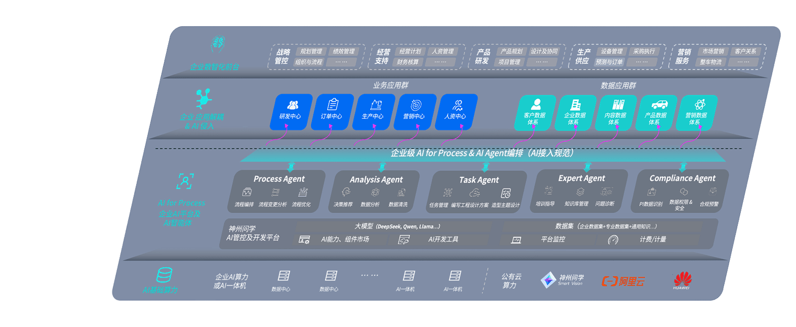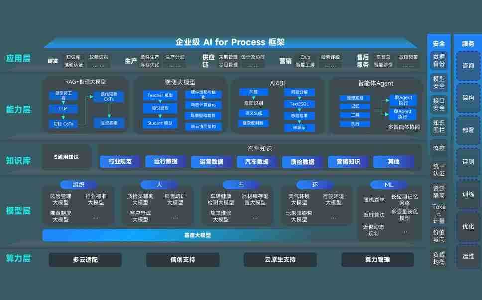 端到端的一站式AI工作空间深度融合了从企业战略规划到日常经营的全流程业务板块,,定向解决车企内部领域多、、部门多、、、、链条长、、、、场景碎片化等难题,,,支持车企快速构建以AI为核心的生产力写作体系,,,,实现任务执行与AI能力的无缝集成与交互